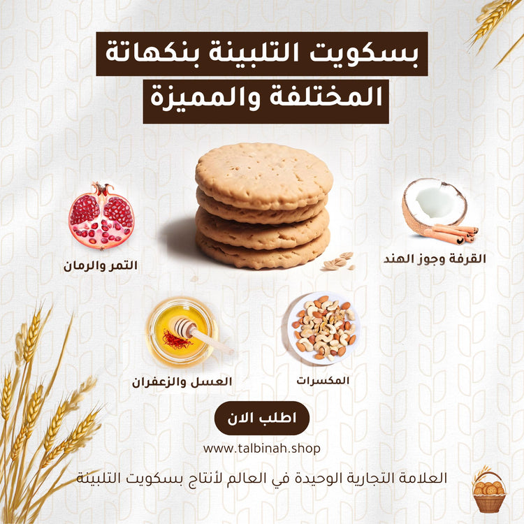 التشكيله الكامله من التلبينه النبويه البسكويت والوحيده من نوعها في العالم بنكهاتها المميزه والمختلفه